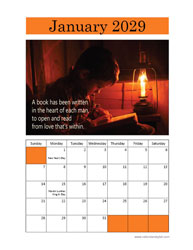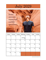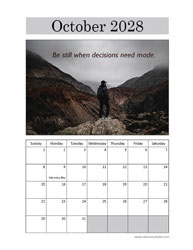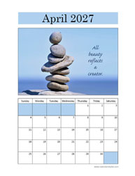 Calendars By Tat & CBT Publications has offered free printable monthly calendars since 1999. The yearly calendars have beautiful color photographs with eloquent poems or epigrams of spiritual wisdom that are written for believers to meditate. They are perfect for home or office, and available in English and Spanish.