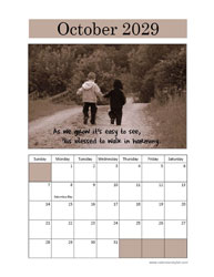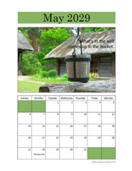 Print entire 2029 English calendar here -OR- Print entire 2029 Spanish calendar here.