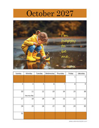 Print entire 2027 English calendar here -OR- Print entire 2027 Spanish calendar here.
